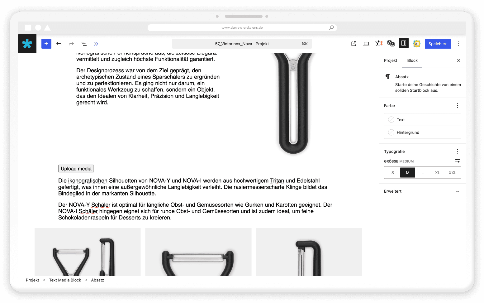 Zusätzlich verfügt die Seite über einen visuellen Editor, der redaktionelle Anpassungen besonders einfach macht und es dem Team ermöglicht, Inhalte jederzeit ohne technisches Vorwissen zu pflegen.